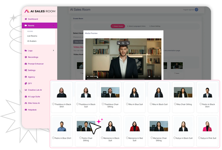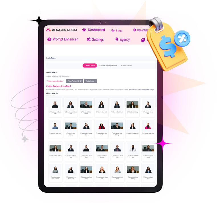 Choose Your Preferred AI Avatar And Room Layout - Choose The Style, Voice, And Tone That Fits Your Offer Best.