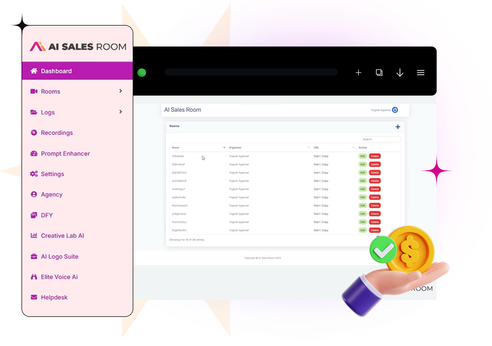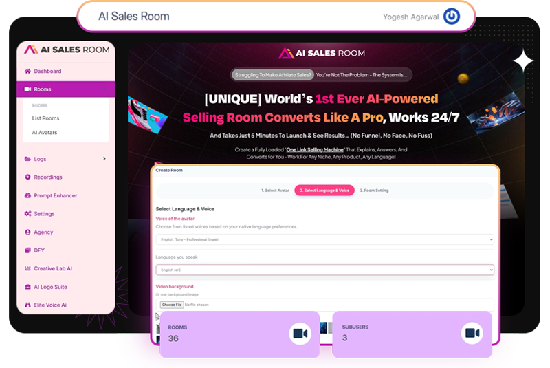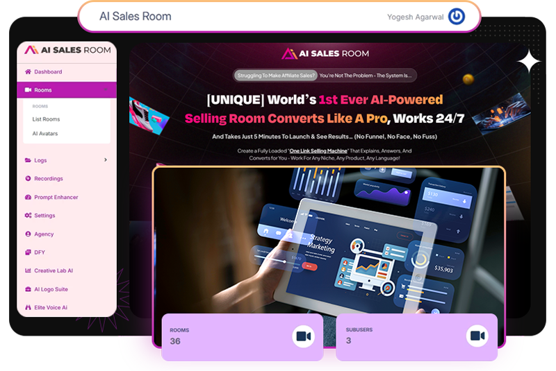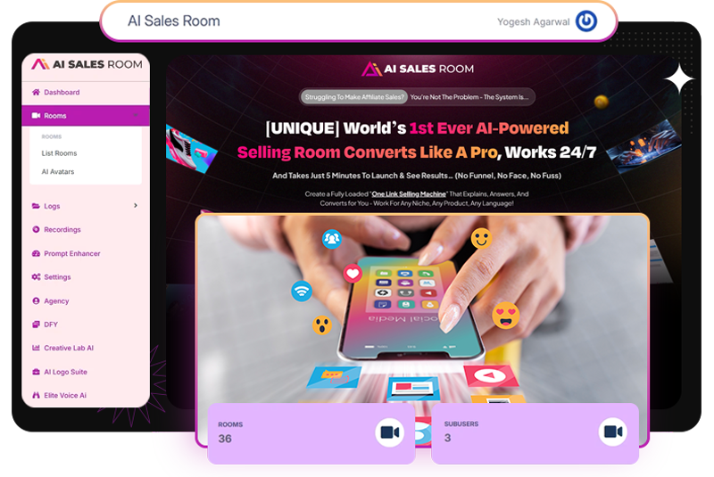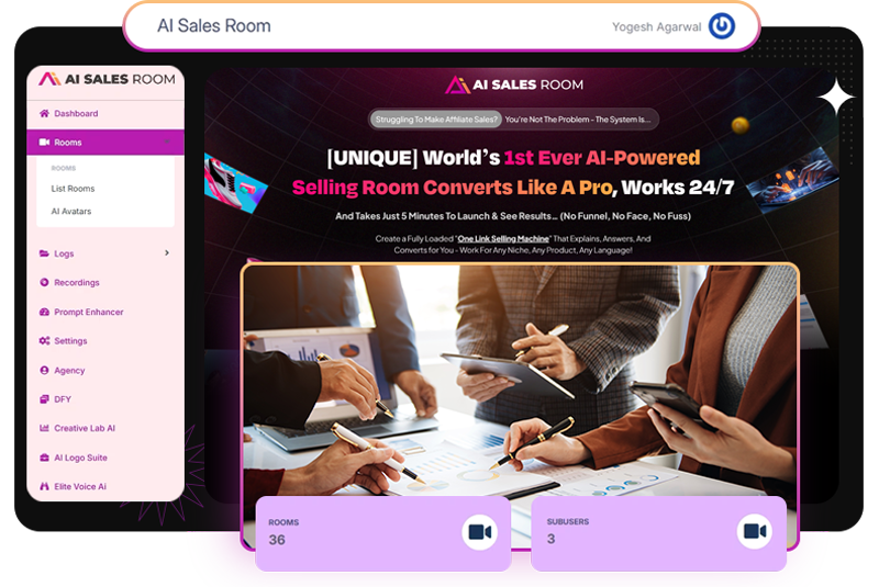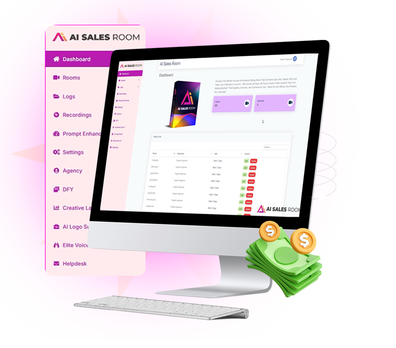 We may use third-party platforms (e.g., JVZoo, ClickBank, Gumroad, Stripe, PayPal, Paddle) to facilitate sales and/or payments. While these services may help process transactions, all product questions, support inquiries, and refund requests must be sent to the vendor (AI Sales Room), not to the marketplace or processor. Their involvement should not be construed as an endorsement, approval, or review of our products, claims, or opinions. Intellectual Property & Trademarks: All product names, logos, and brands are property of their respective owners. Use of these names, logos, and brands does not imply endorsement. AI Sales Room content is protected by copyright and other intellectual property laws. Refunds & Support: Please refer to our Refund Policy here: Refund Policy and our Support Page here: support@agarwalinnosoft.com For assistance, contact support@agarwalinnosoft.com