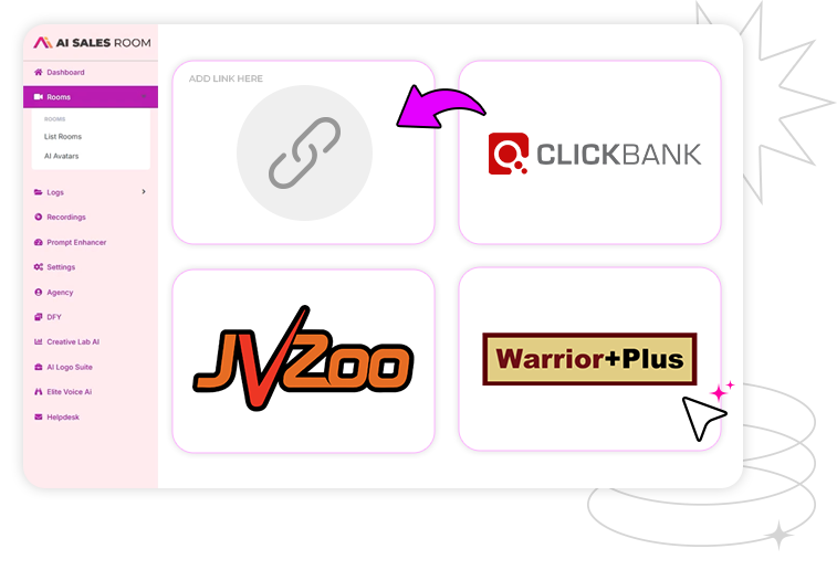 Absolutely. AI Sales Room was built to support WarriorPlus, JVZoo, ClickBank, and even your own offers—right out of the box.